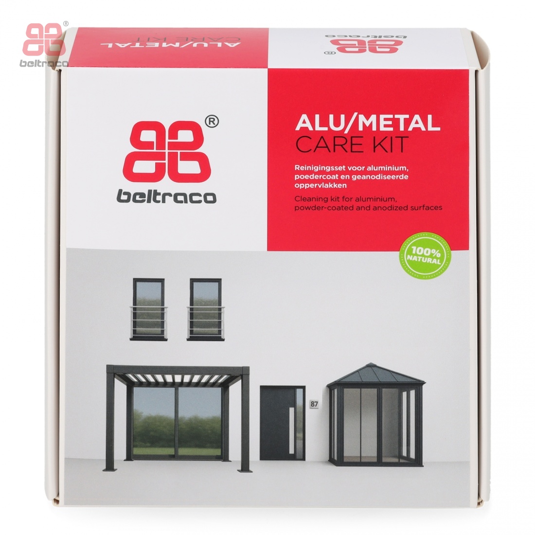 Reinigingsset voor het effectief reinigen en onderhouden van gebruiksvoorwerpen van aluminium-, poedercoat- en geanodiseerde oppervlakken. Verwijdert zeer goed vuil dat is ontstaan door gebruik, vet en vingerafdrukken. Verandert de glansgraad niet.